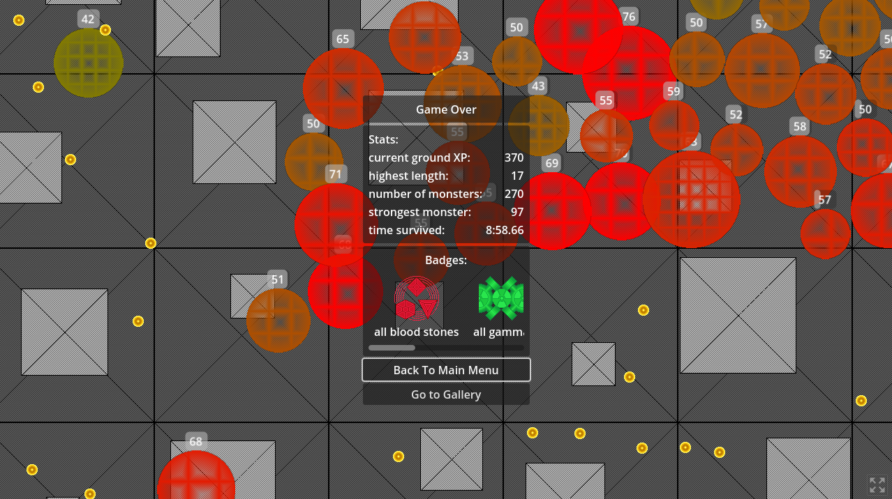A survival roguelike where you build a chain of automated weapons to keep back the horde of mutant waffles for as long as possible